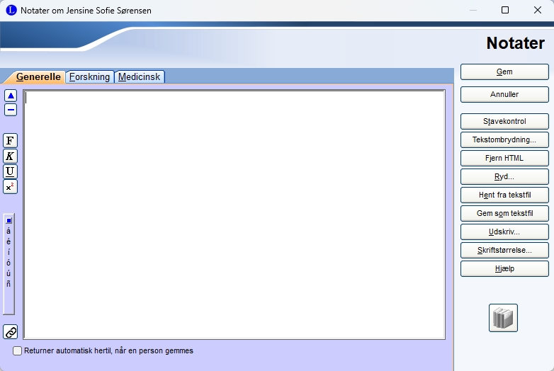 | Åbner indtastningsvinduet for personen. Samme vindue som hvis man klikker på personen generelt. |