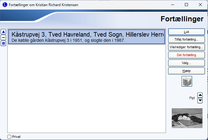 | Her kan man oprette fortællinger om personen. Kan tilføjes billeder samt deles mellem flere personer. |