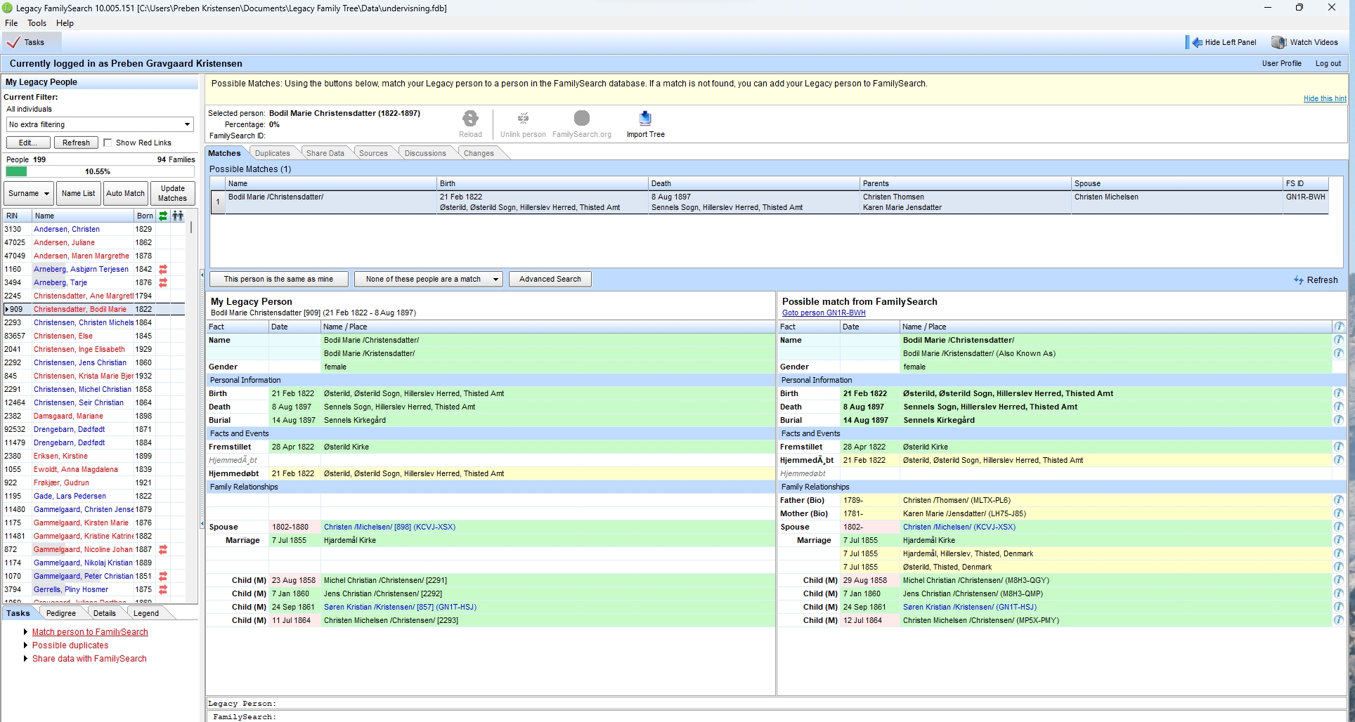 Ønsker man at intigrer FamilySearch mere i sin Legacy kan man se en video om dette på Legacy hjemmesiden Brug LegacyFamilySearch |