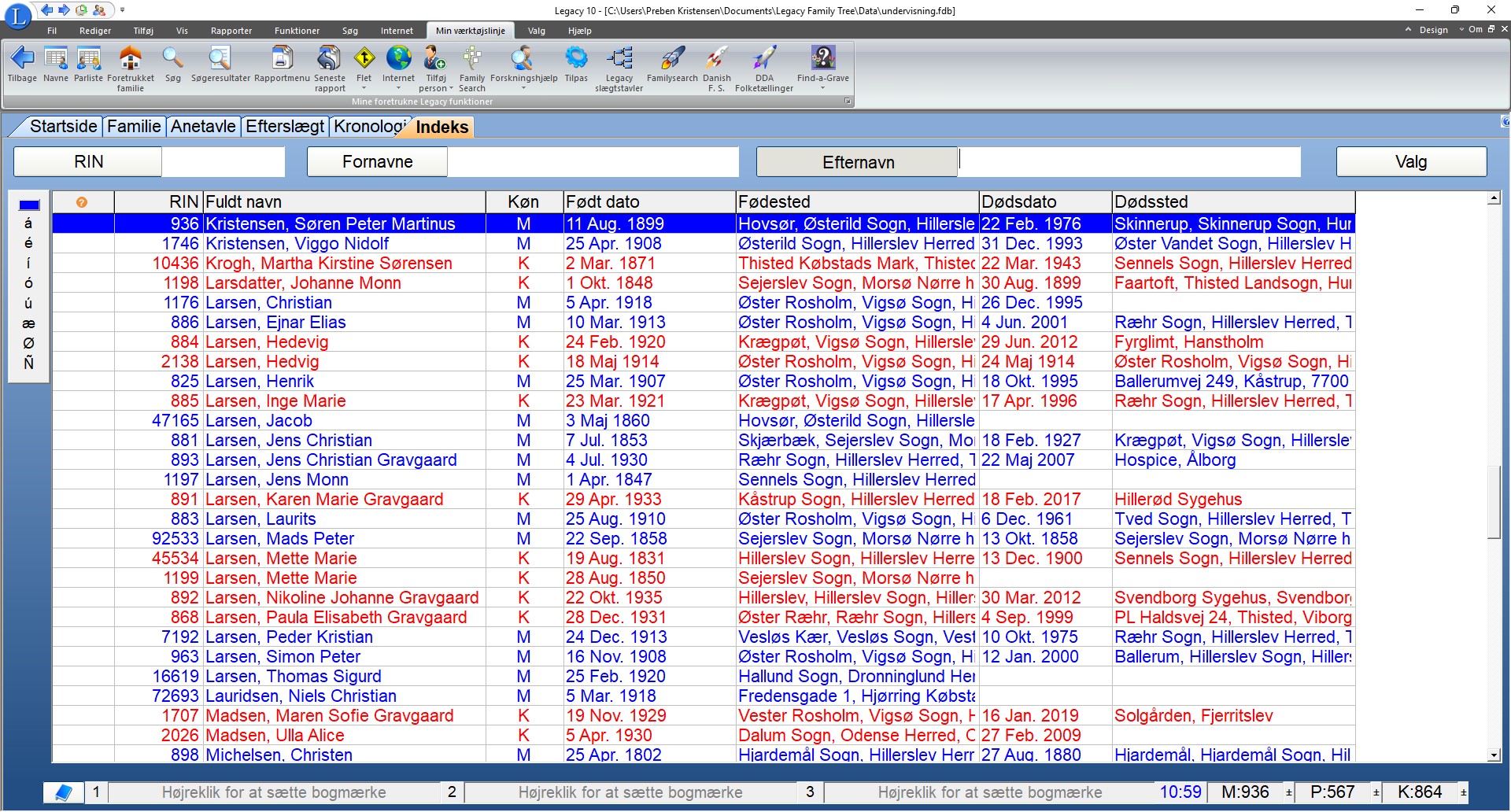 Viser navnelisten over samtlige indtastede personer.