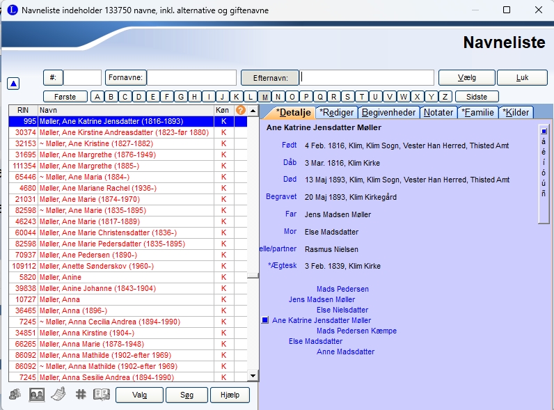 | Klik på ikonet Navne, hvorved listen over samtlige personer i din database åbnes. |