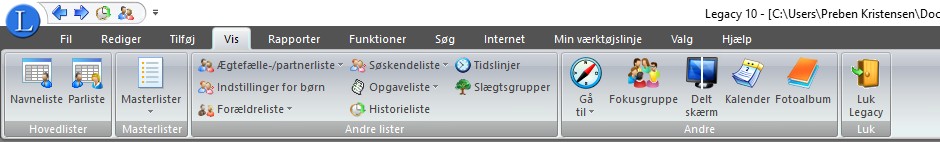 Få vist Navneliste, Parliste, Marsterliste med mere.