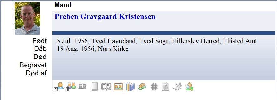 Det første vindue viser en eksisterende person. Klikker man på den åbnes Personinformation for personen, klikker man på et af ikonerne åbnes der andre vinduer. |