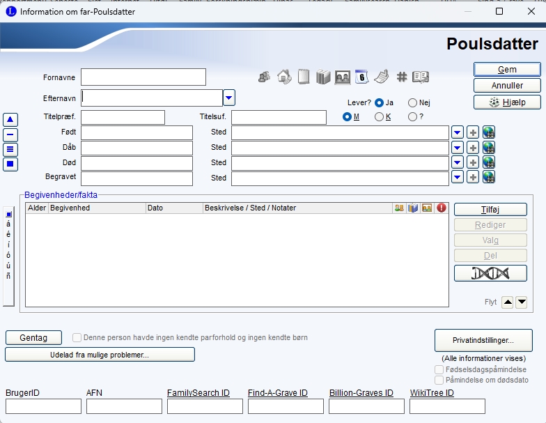 Det er her man rediger oplysninger om en eksisterende person, eller opretter en person.