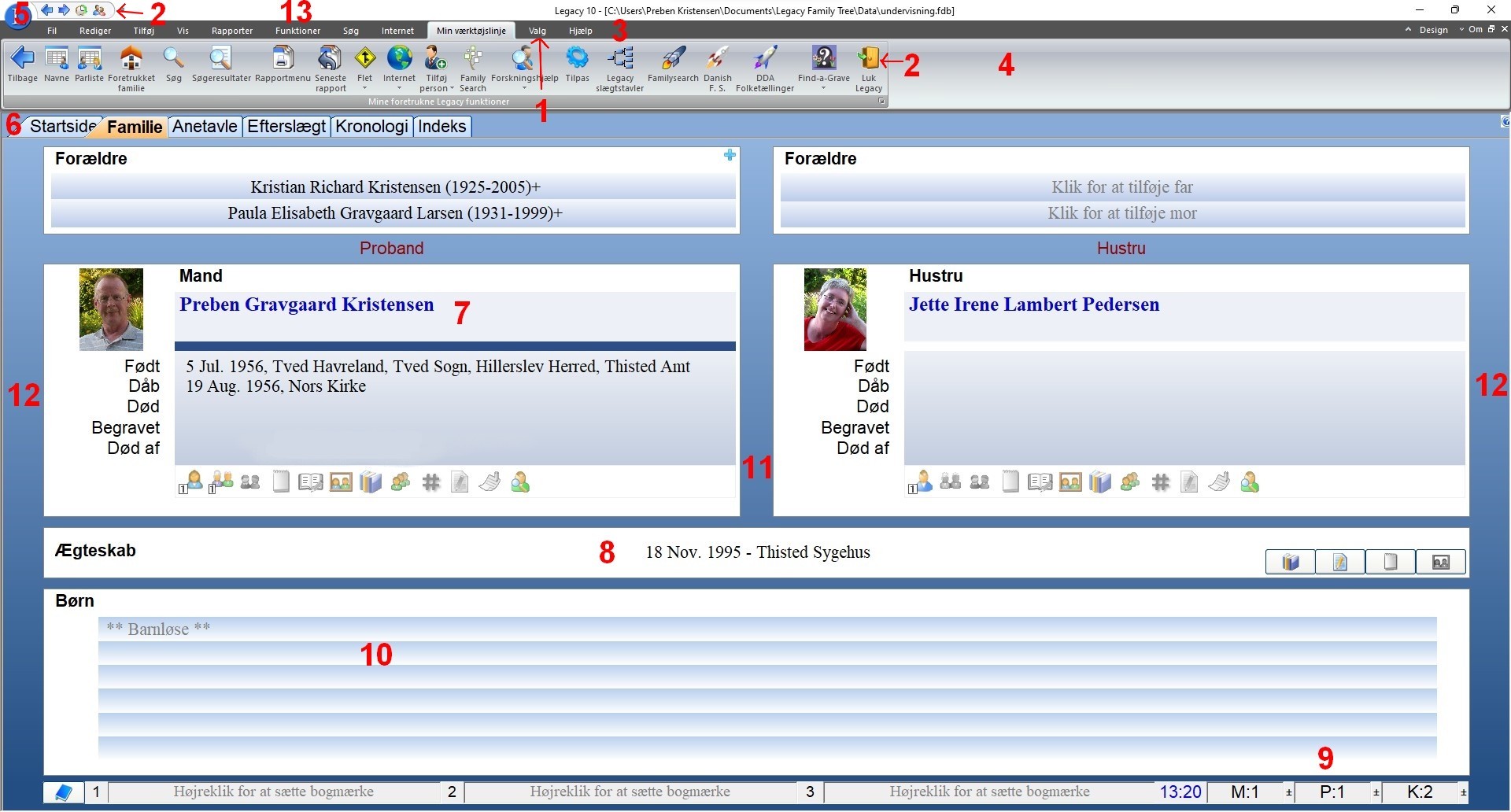 Lidt om indstillinger og funktioner i Legacy 10. Nederst på siden er der et link til hvordan man starter på en ny database.