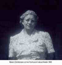 Maren married Soren Christensen, son of Jørgen Christensen and Inger Sidsel Sørensen, on 11 Nov 1907 in Holdrege, Phelps County, Nebraska, United States. (Soren Christensen was born on 12 Apr 1875 in Evanston, Cook County, Illinois, United States, died on 7 Mar 1958 in Maywood, Frontier County, Nebraska, United States and was buried on 9 Mar 1958 in Maywood, Frontier County, Nebraska, United States.) |