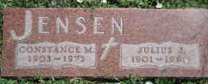 1. Gravsten, Apr 1973, Ord Cemetery, Ord, Valley County, Nebraska, United States. Constance married Julius J. Jensen, son of Johannes Jensen Kjær and Marie Pedersen, on 11 May 1931 in Loup City, Sherman County, Nebraska, United States. (Julius J. Jensen was born on 4 Oct 1901 in Ord, Valley County, Nebraska, United States, died on 12 Dec 1981 in Ord, Valley County, Nebraska, United States and was buried in Dec 1981 in Ord Cemetery, Ord, Valley County, Nebraska, United States.) |