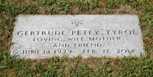 1. Gravsten: Green Cemetery, Glastonbury, Hartford County, Connecticut, United States. Gertrude married Graham Elliot Tyrol, son of Edward H. Tyrol and Francis Olive Bidwell. (Graham Elliot Tyrol was born on 29 Jan 1928 in Glastonbury, Hartford County, Connecticut, United States, died on 4 Feb 2007 in Glastonbury, Hartford County, Connecticut, United States and was buried on 7 Feb 2007 in Green Cemetery, Glastonbury, Hartford County, Connecticut, United States.) |