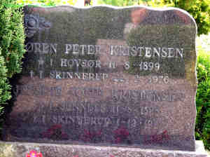 4. Gravsten: Skinnerup Kirkegård. Søren married Jensine Sofie Sørensen, daughter of Kristian Sørensen and Ellen Marie Jensen, on 28 Jan 1921 in Sennels Kirke.97 (Jensine Sofie Sørensen was born on 11 Aug 1898 in Hundal, Sennels Sogn, Hillerslev Herred, Thisted Amt 98,99, christened on 6 Nov 1898 in Sennels Kirke,98 died on 1 Dec 1969 in Skinnerup, Skinnerup Sogn, Hundborg Herred, Thisted Amt 99,100 and was buried on 4 Dec 1969 in Skinnerup Kirkegård 99.) |